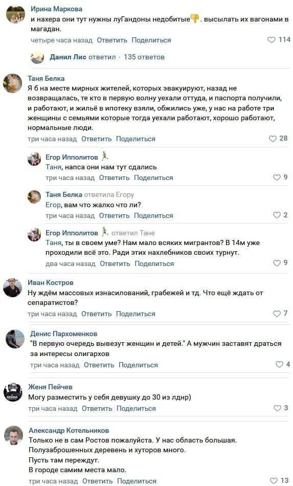 With love and warmth, Russians welcome refugees from ORDLO. This is precisely what comments from residents of Rostov testify to. But it's not certain. And these are still the most restrained commenters.