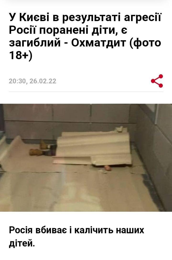 It became known that Russian saboteurs marked the children's hospital in Ohmadit with fire adjustment marks as early as February 18. Today, during the shelling, a boy was killed there, and four children were injured.