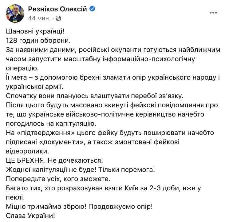 Her goal is to break the resistance of the Ukrainian people and the Ukrainian army by using lies. Using the tactics of total disinformation and intimidation of civilians, the enemy will try to sow panic and chaos.