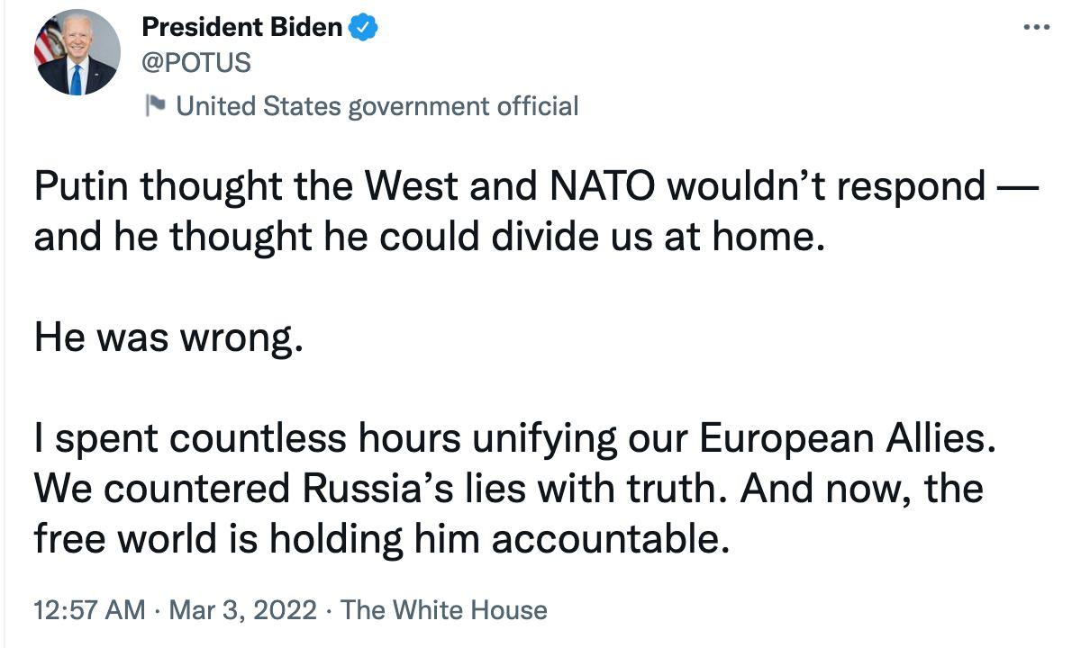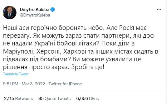 We will win. But until then, not a single rocket will fall on our cities, not a single Russian stray column will enter any settlement, and not a single Ukrainian defender will give their life for the world to rid itself of a terrorist country. This is a fact that must be acknowledged.