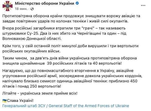 Overall, as of 23:00 on March 5th, the losses of aviation equipment of the Russian occupation forces are as follows: