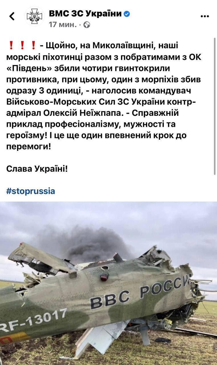 ☑️ Three helicopters shot down by a Navy infantryman of the Armed Forces of Ukraine.