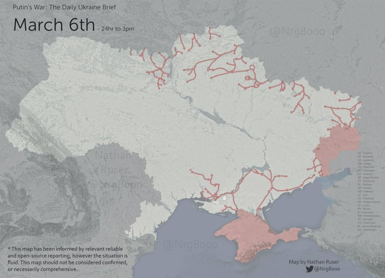 Operational information as of 24:00 on March 6, 2022 regarding the Russian invasion.