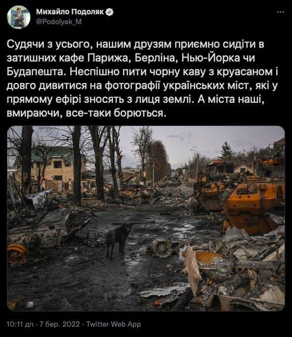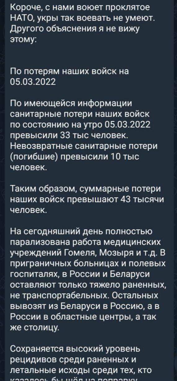 😶 Russians announce that they are supposedly ready to openhumanitarian corridorsfor the evacuation of the population of Kyiv, Kharkiv, Mariupol, Sumy and Chernihiv at 10:00 on March 8