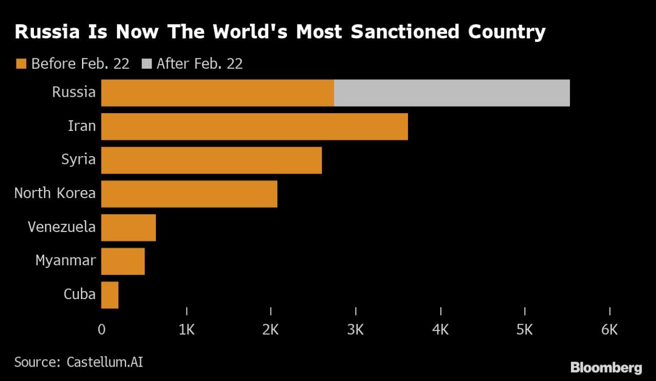 🎉Russia confidently outperformed Iran and became the first on the list of countries with the highest number of sanctions imposed against it.