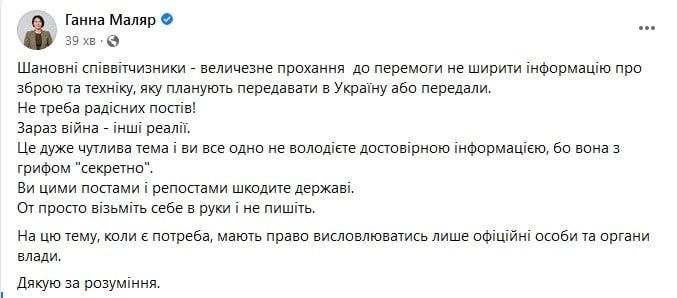 ❗️The Ministry of Defense asks not to write about what weapons and equipment are being transferred to Ukraine.
