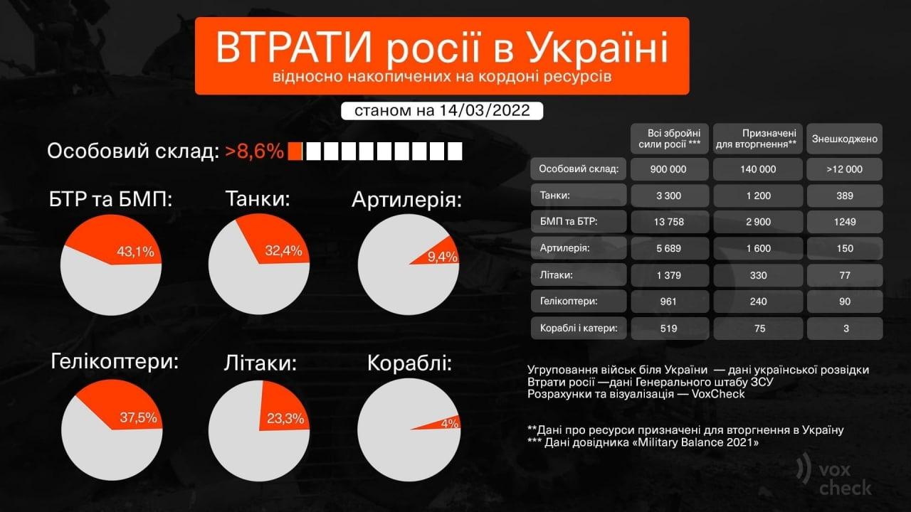 Our brave defenders continue to inflict devastating losses on Russian forces. Soon, the number of shot down helicopters of Russia will reach hundreds. They have already lost 80 fighter jets. Hundreds of tanks, thousands of other military equipment units. In 19 days, the Russian army has lost more killed in Ukraine than in two bloody and long-lasting wars in Chechnya.