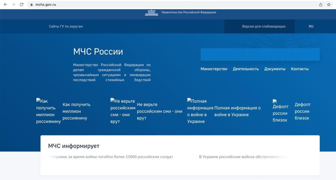 💻 Hackers hacked the website of the Russian EMERCOM.