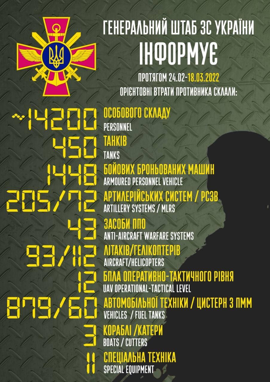 🔻Through a failure in promoting troops, the occupiers strike rocket-bomb attacks on the peaceful population. Only within the day of 18 March, the occupiers inflicted 4 rocket strikes (14 rockets) and carried out over 40 air raids.