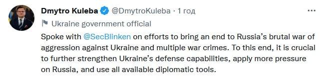 🇺🇦🇺🇸 Kuleba and Blinken discussed efforts to end Russia's military aggression against Ukraine.