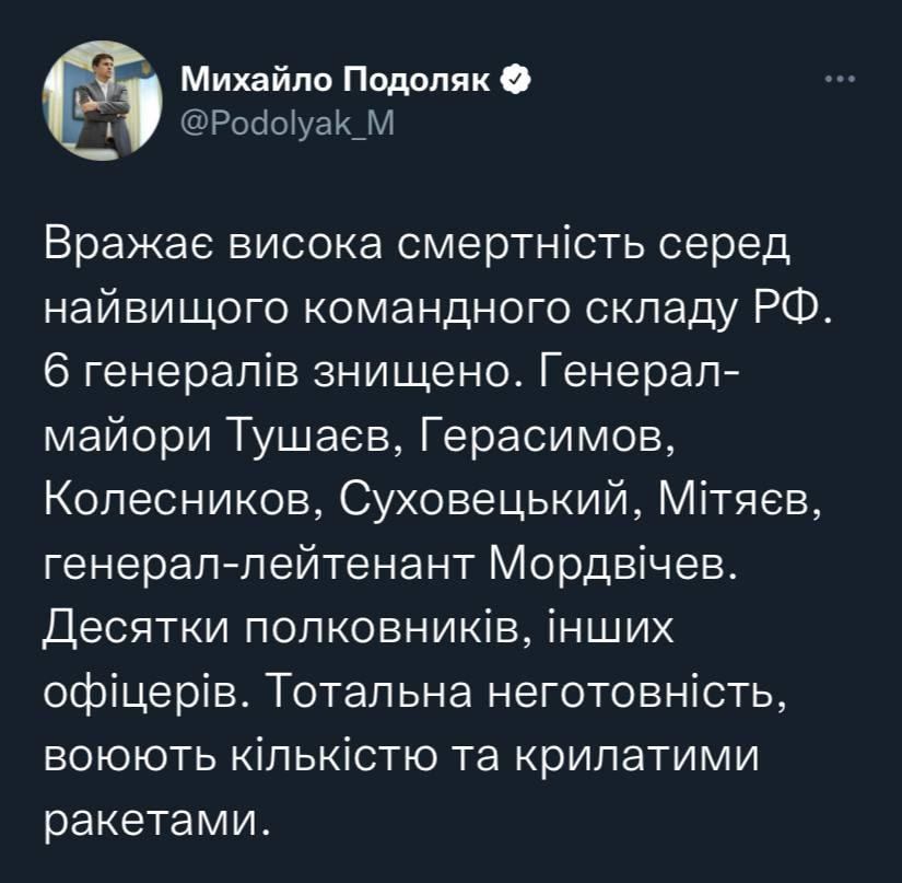 Remind you that his official position is the advisor to the chief (Yermak) of the Office of the President of Ukraine (Zelensky). Why do they keep him? Since during the war, we do not criticize our government, I limit myself to this question.