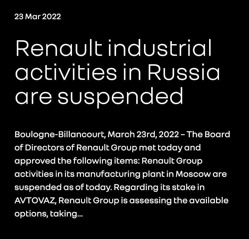 🙅♂️The French automaker Renault has suspended operations at its plant in Russia.