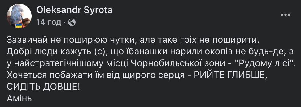 Over the past week, our heroic Armed Forces have inflicted powerful blows on the enemy. No significant losses. They say the Russian defense minister has disappeared somewhere... Interesting, maybe he also personally wanted to visit Chornobayivka?