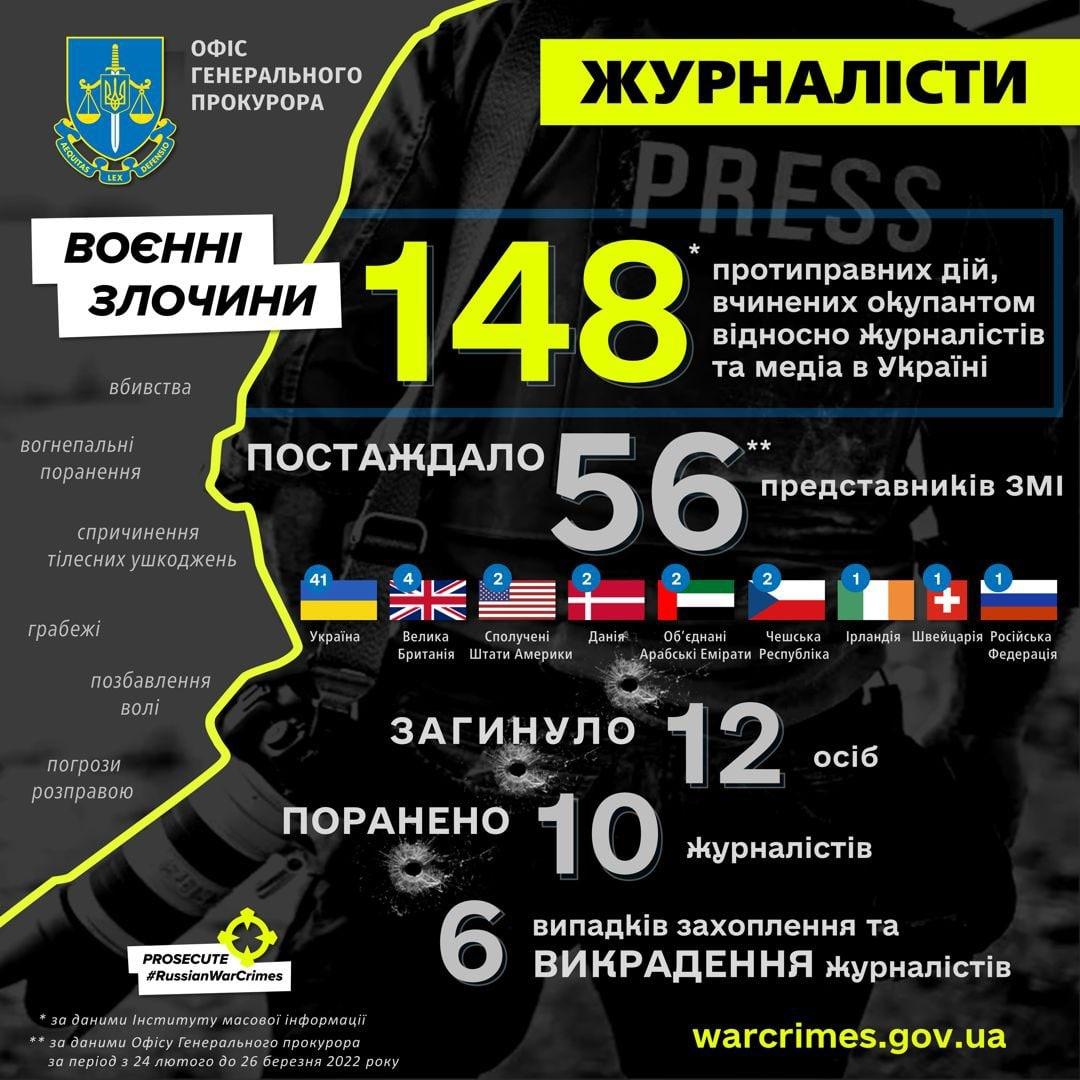 🕯During the full-scale war in Ukraine, 12 journalists have already been killed, another 10 have suffered physical injuries —Attorney General Irina Venediktova