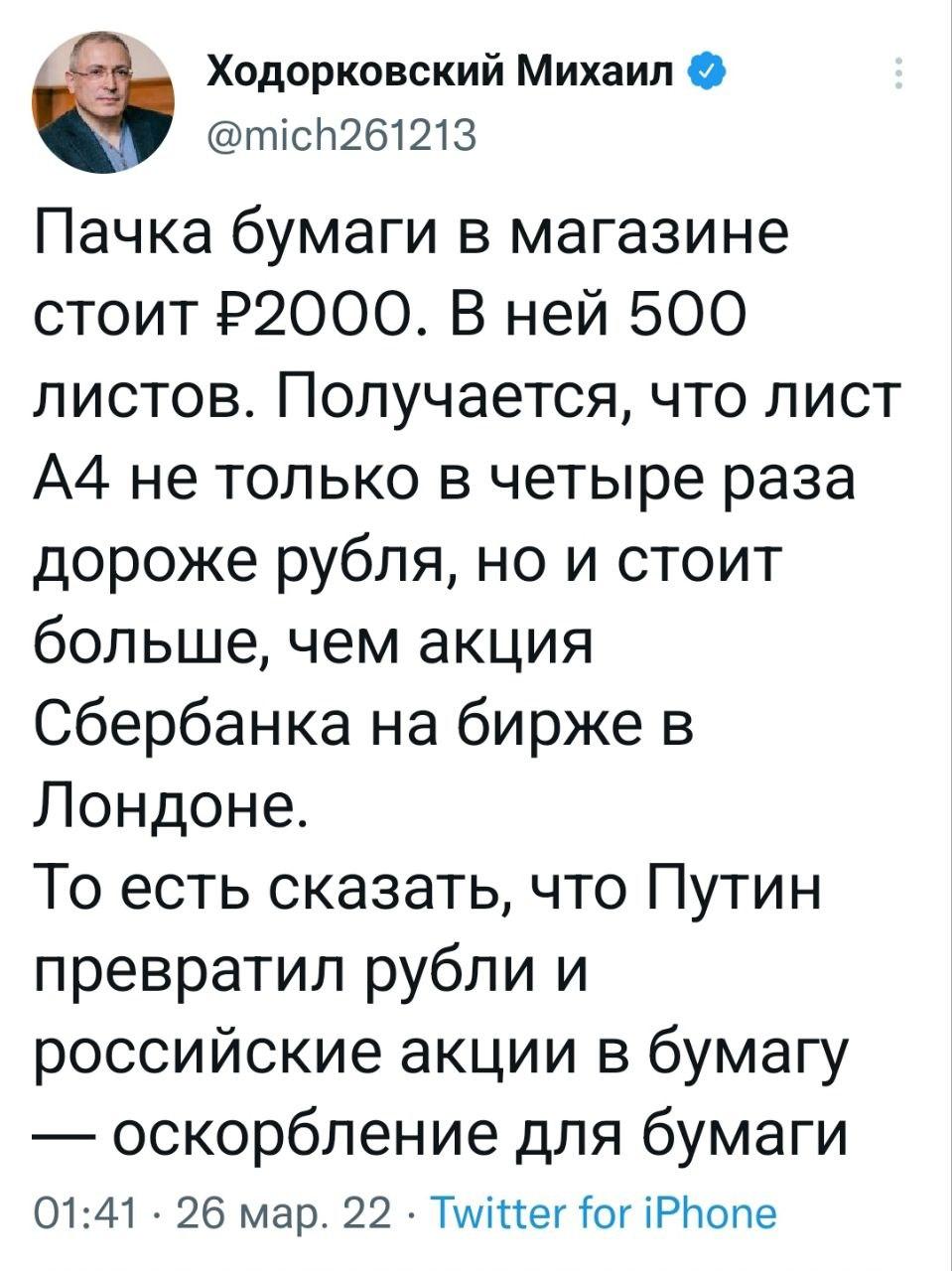 The ruble turned into ashes due to sanctions. The economy of Russia practically fell by half. It is Putin who should be held responsible for this.