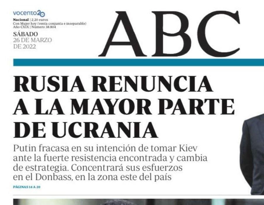 And at the same time, one of the central newspapers in Spain writes that Ukraine has won and Putin is withdrawing troops. I like the headline. But it seems they published it all too early. Maybe they know something, damn it? )))