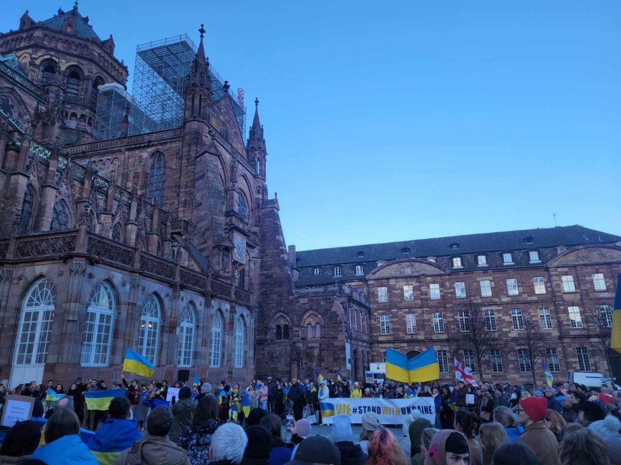 France, Strasbourg, city center. Meeting on the occasion of two years since the invasion of Russia in Ukraine.