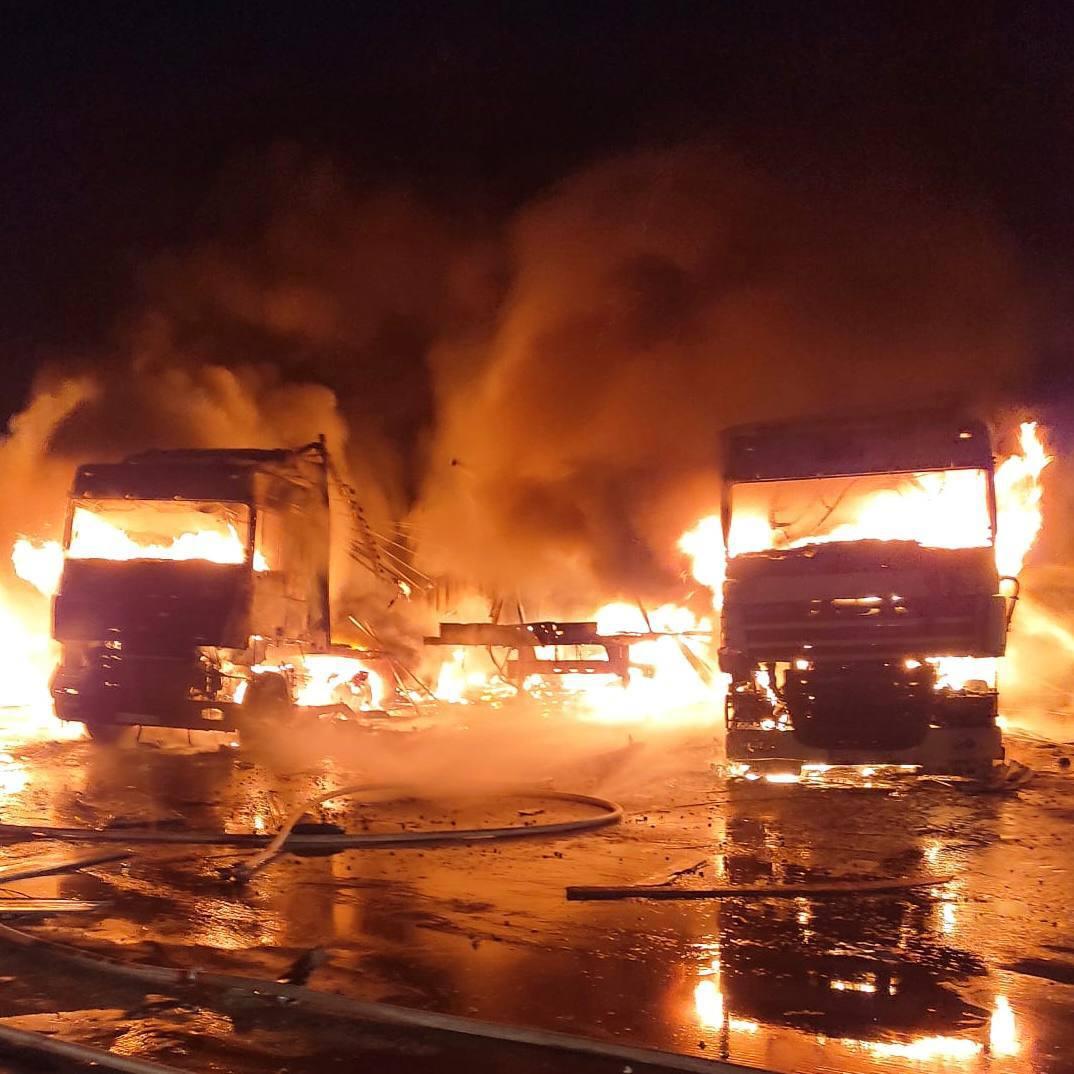 In Nikopol, 4 freight vehicles caught fire. 2 of them were destroyed, 6 cars were damaged, walls and windows of the production premises of the enterprise were affected.