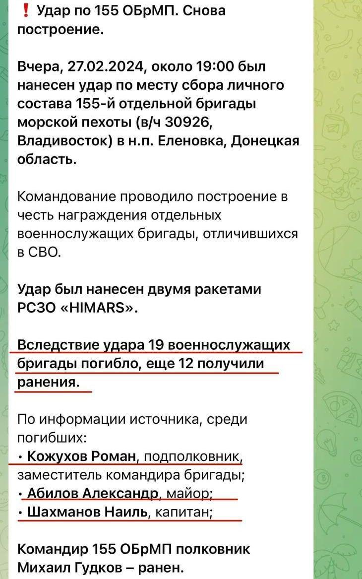 This time, as a result of a strike on the location of Russians in Olenivka, at least 19 RF military personnel were killed.