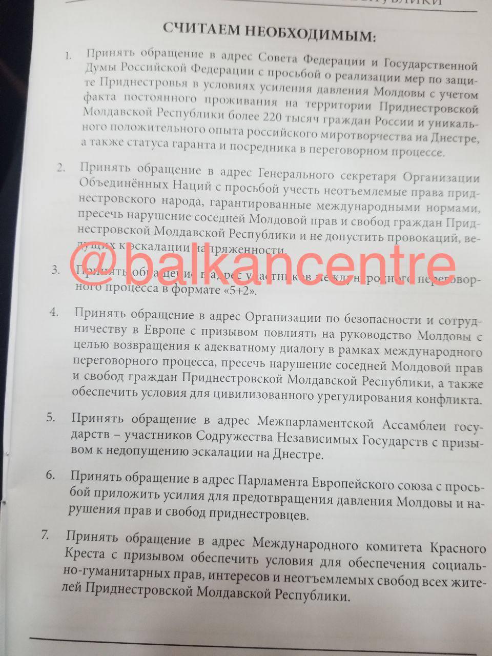 🔹 The unrecognized government of Transnistria appealed to the Russian Federationwith a request for protectionfrom "strengthening Moldova's pressure".