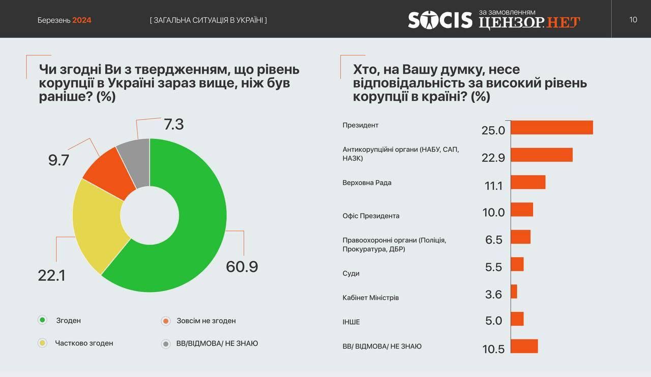 Fresh opinion poll shows that Zelensky's biggest mistake is maintaining a high level of corruption. Likewise, the vast majority of Ukrainians consider Zelensky primarily responsible for high levels of corruption. It's almost a verdict.