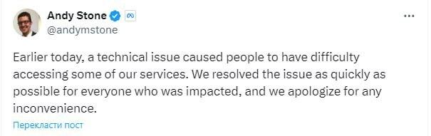 🙈 Meta explained the failure by technical issues and stated that everything has already been resolved.