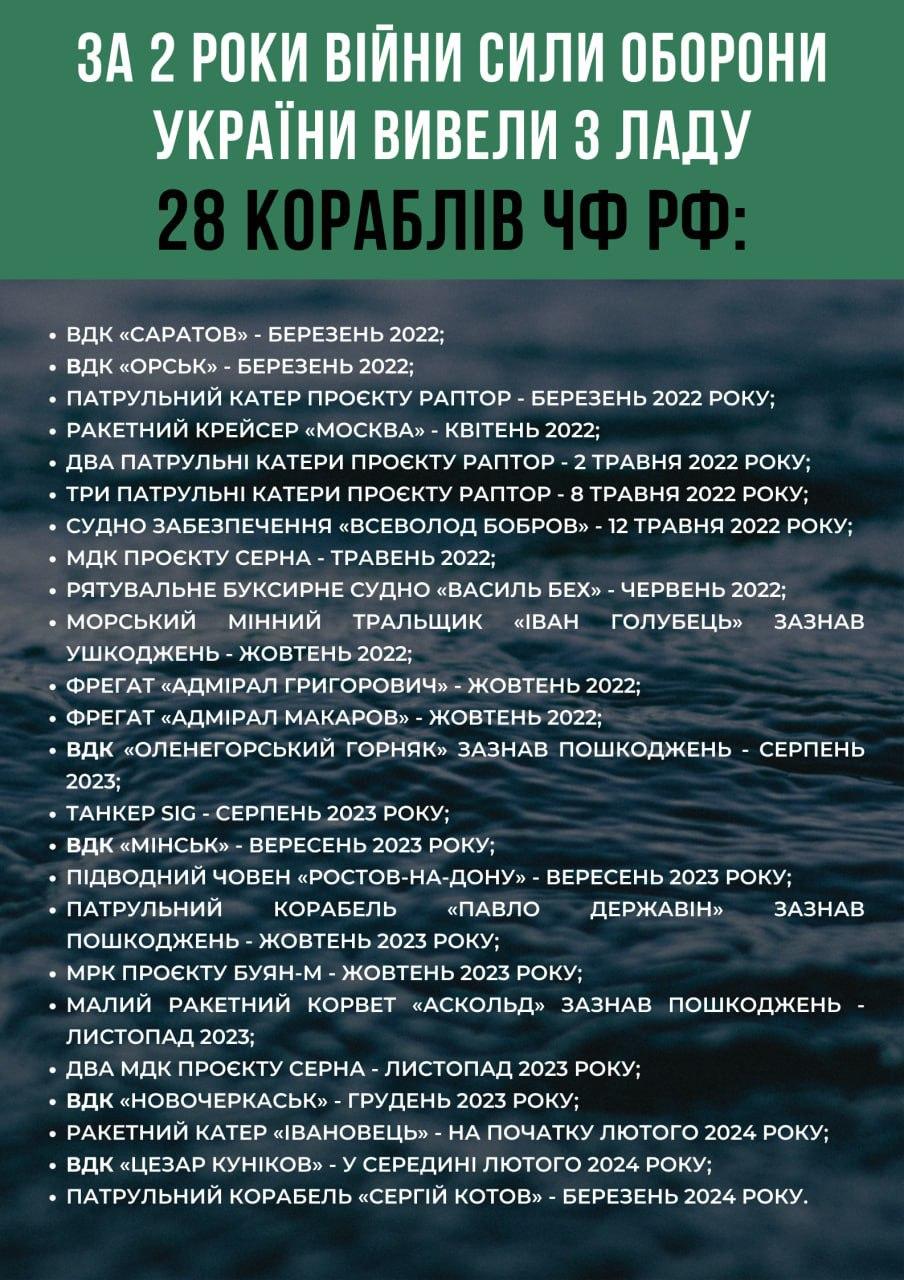 🔥Thanks to the viewer of Pravda who shared this infographic with us, we can recall all 28 destroyed RF ships, including Sergei Kotov.