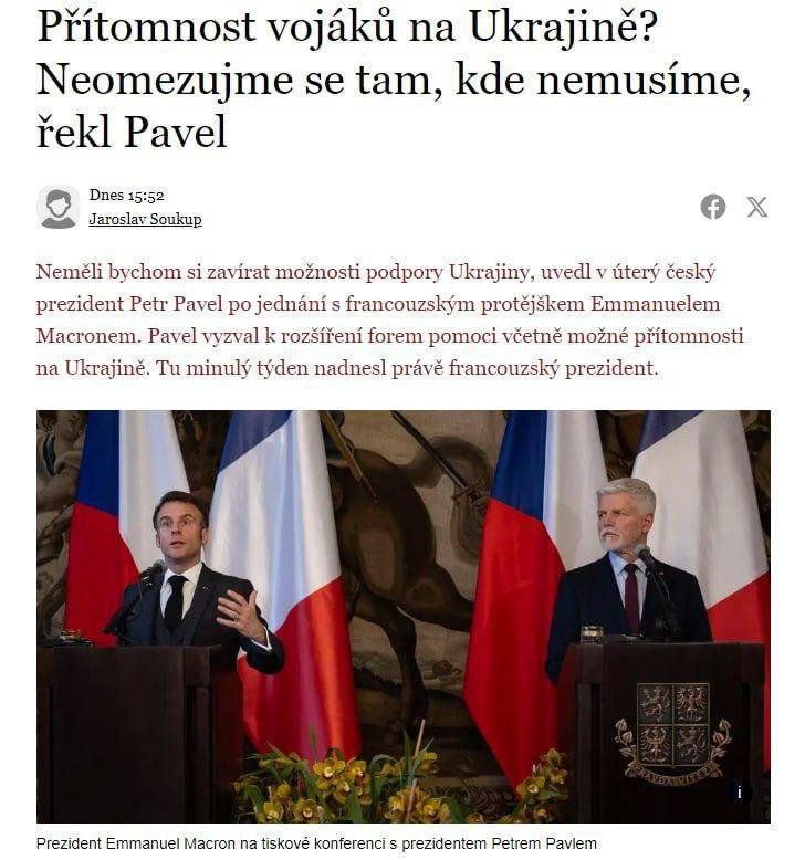 President of the Czech Republic, General Petr Pavel, did not rule out sending Western troops to Ukraine and called on Europe not to limit itself.