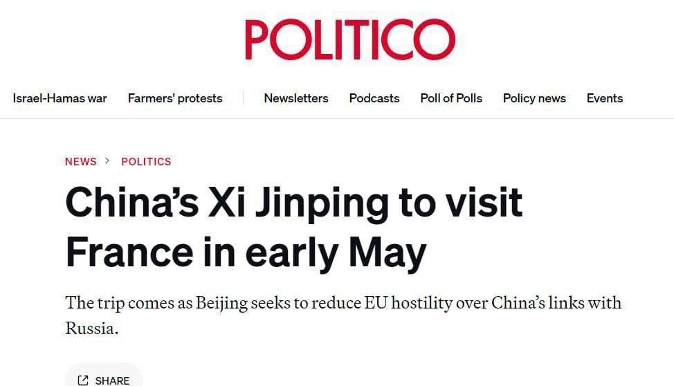 Information from Politico is confirmed by other sources. So, we see direct blackmail from Beijing. Interestingly, China has resorted to this method because it really believes it will help restore peace in Ukraine, or it believes that the West will not go for it and it will not only break off negotiations, but also lead to a postponement of any process in this direction. The answer lies solely in the plane of China's personal interests. And we will soon see what exactly Beijing wants. And this will explain a lot.