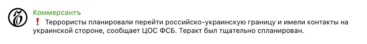 🔹In the State Border Guard Service and the National Security and Defense Council, categoricallyrefutedThe involvement of Ukraine in the terrorist act in the Russian Federation.