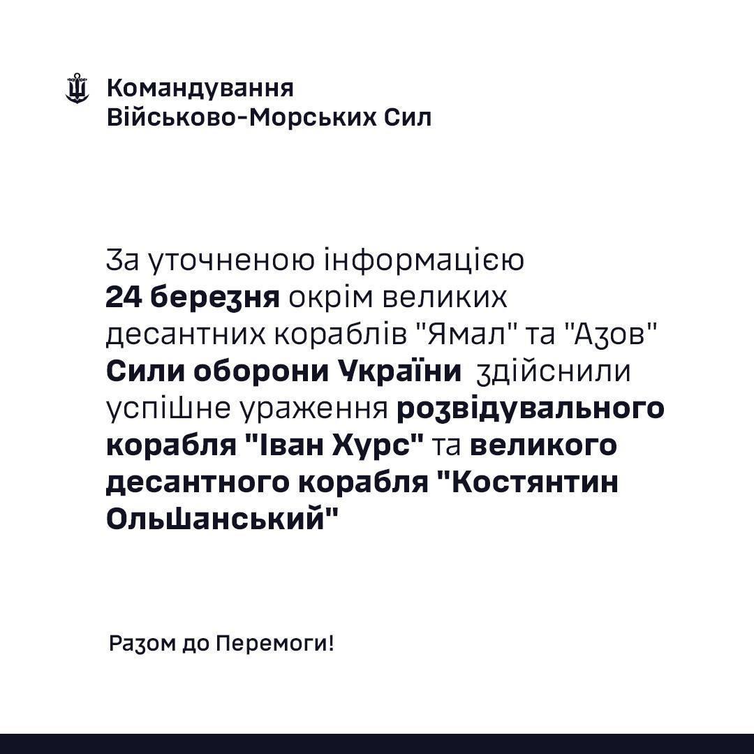 🔹 The defense forces struck with "Neptune"by the captured Russians assault ship "Konstantin Olshansky".