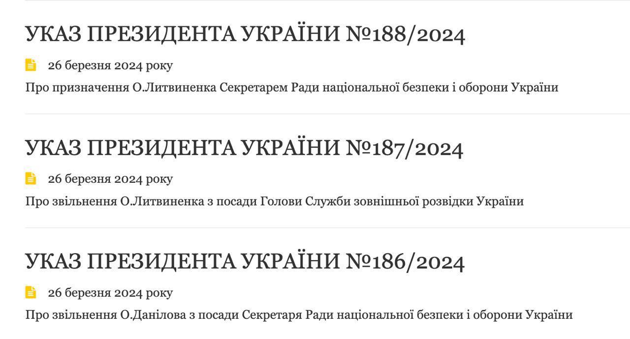 🔹 Zelenskyfired Danilovfrom the post of Secretary of the National Security and Defense Council.