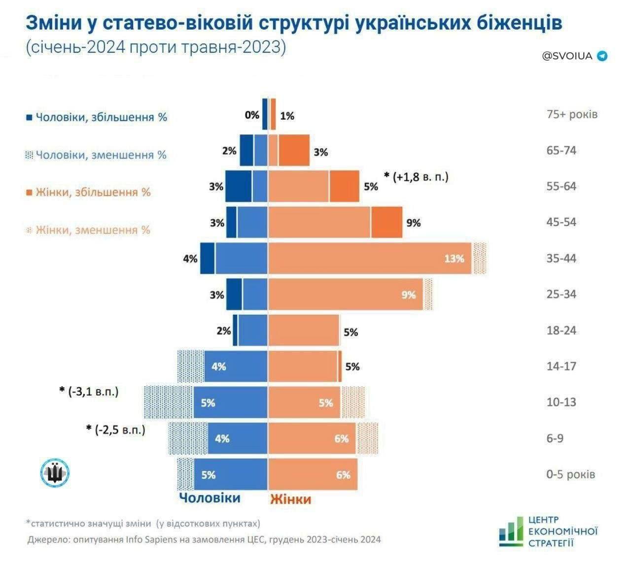 According to a study by the Center for Economic Strategy, the proportion of men among refugees from Ukraine currently staying abroad has increased from 17% to 35%.