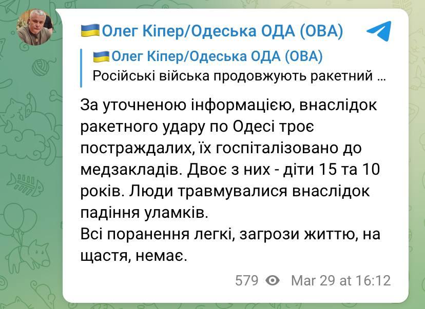 As a result of the attack of Russia in Odesa, three people were affected, two of them are children. - OVA