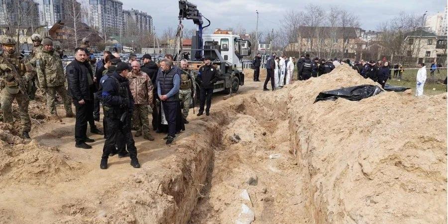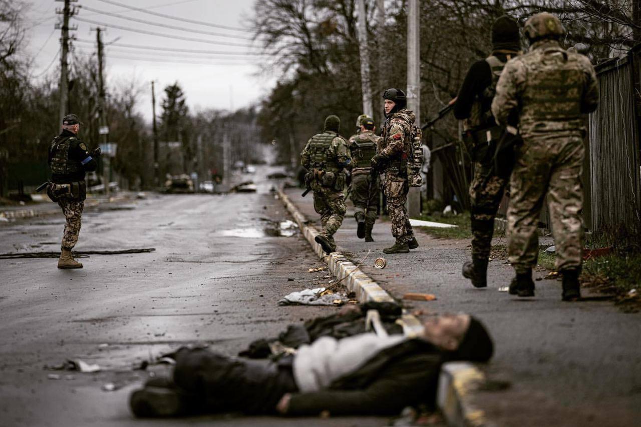 This is about kidnapping, torture, rape, looting and killing of civilians, including children in Bucha.