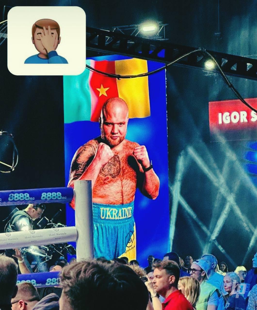 Ukrainian heavyweight boxer Ihor Shevadzutskypresentedflag of another country. Before entering the ring, an image of Shevadzutsky appeared on the screen, where he posed against the backdrop of the Cameroon flag.