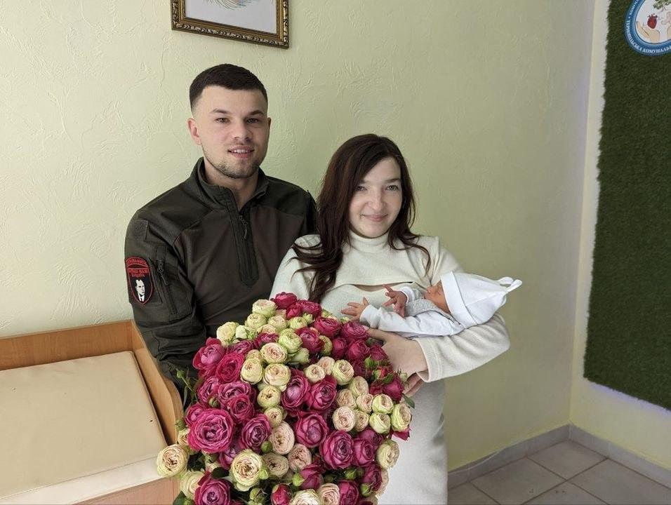 Military from Ternopil, Liubomyr Perozhak, took his newly born son and wife from the maternity ward.