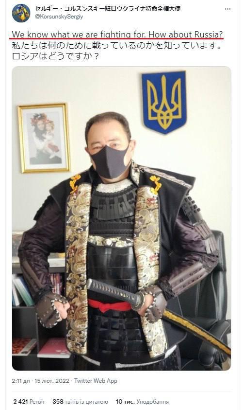 Наш посол в Японії Сергій Корсунський ввечері напередодні очікуваного нападу: "Ми знаємо, за що б'ємося. А Росія?".