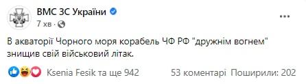 Повітряні Сили ЗСУ знищили російський військовий літак Су-30 СМ. Продовжується оборона південного кордону України.