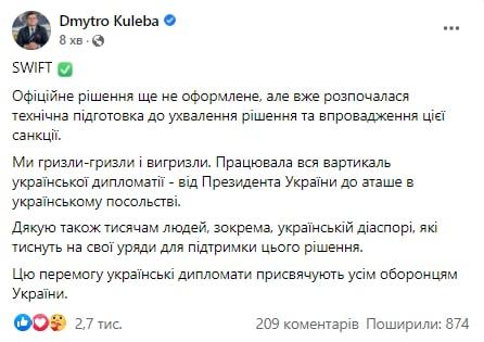 ЗЛО МАЄ БУТИ ПОКАРАНО. Росію відключають від SWIFT!