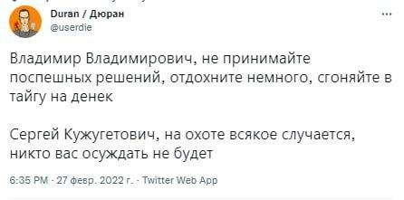 Ну ми там трубку поклали, більше їх не чули. У русні взагалі був той наратив переможної армії, яку всі бояться. Це така захисна реакція ссикунів — щоб усі боялись. І отой вскукарек в Інтернетах про потужні війська він завжди був.