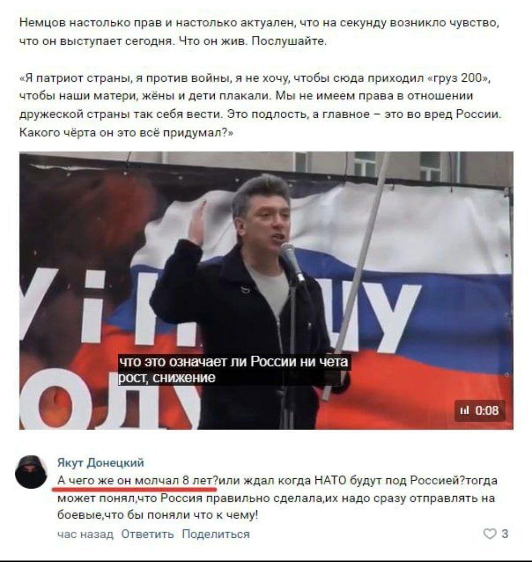 В мене були родичі. Я не дуже їх любив. Звичайні обрусєвші жлоби, пакарітелі Маскви родом з Маріуполя. Коли почався Майдан, то в останній раз ті родичі дзвонили і шось кукарєкали про Кантеміровську дивізію в Києві за 4 години.