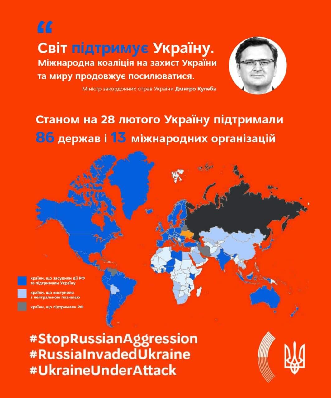 🔺Протягом дня війська агресора перегруповувались і накопичували озброєння, насамперед щоб оточити Київ та інші великі міста. Значна частина військової техніки прибуває з Білорусі та через окупований Крим.