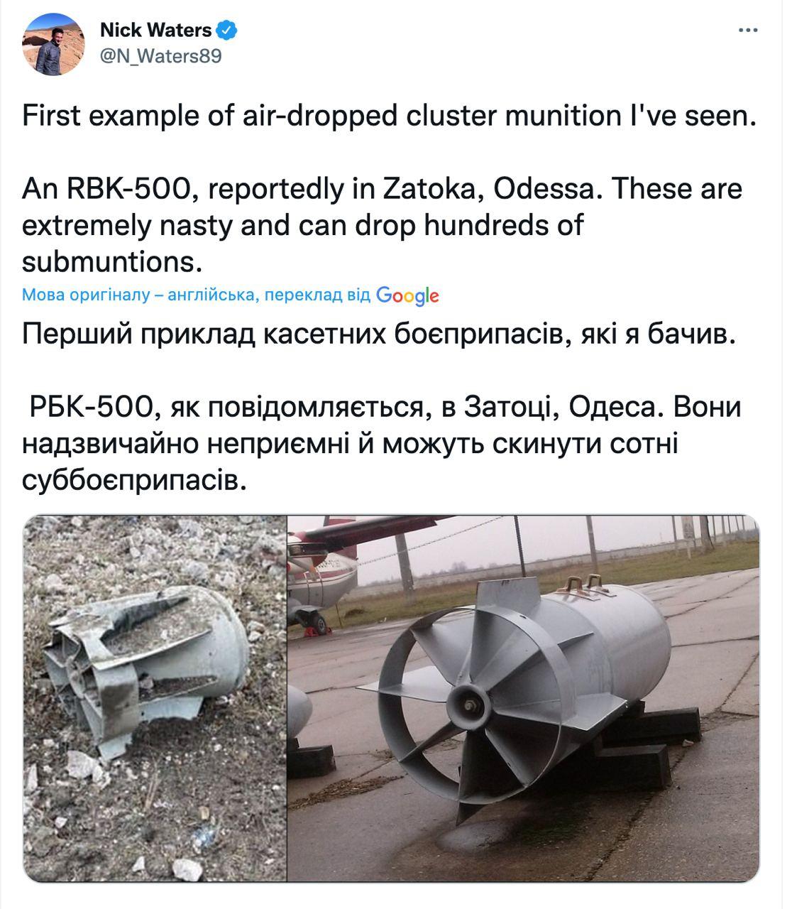 🤬Російські війська скинули на курортне селище Затока на Одещині касетні авіабомби. Ці суббоєприпаси часто не вибухають після падіння і тому несуть велику загрозу для цивільних осіб.