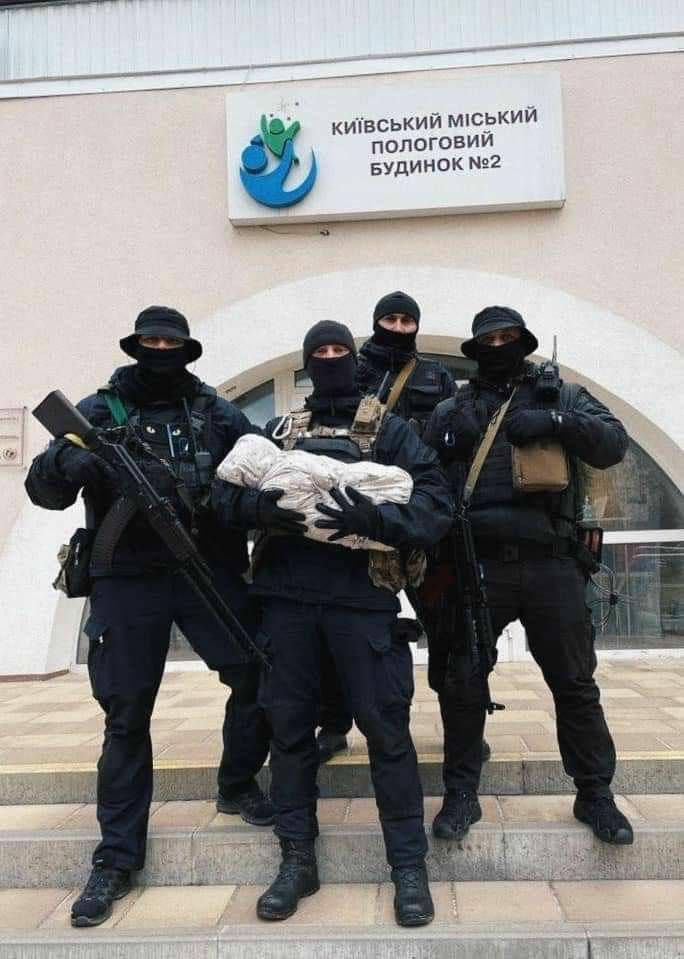 Выписка из роддома во время войны выглядит так. В семье киевского полицейского родился сын. Он с коллегам нашел минутку, чтобы поздравить жену и малыша.