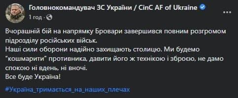 Збройні Сили України, у тісній взаємодії з іншими складовим сил оборони, чинять шалений опір російським інтервентам, завдаючи йому значних втрат у живій сили та військовій техніці.