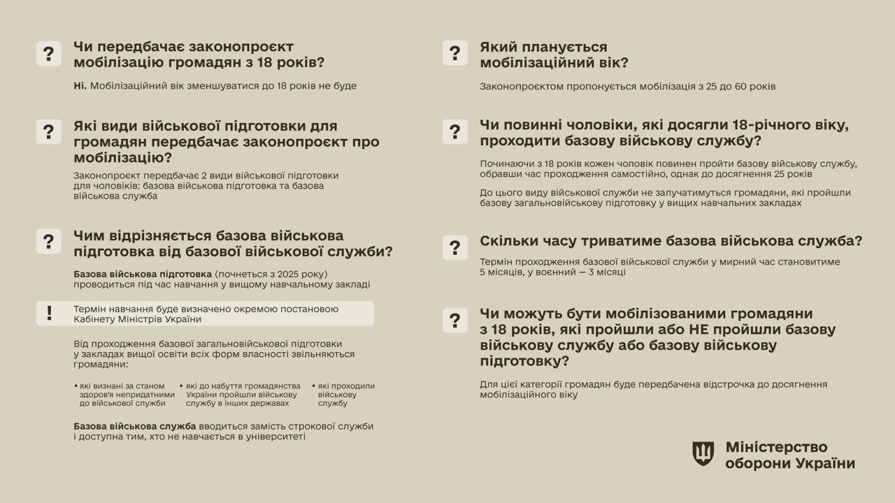 Громадяни з 18 років, незалежно від проходження базової військової підготовки чи служби, отримають відстрочку до досягнення мобілізаційного віку.